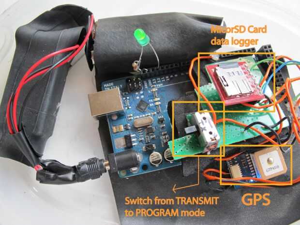 También he añadido un LED en el pin 13 y 12, para medir, respectivamente: si fue transmisión de datos gps en, y si se consigue con éxito almacenan los datos en una tarjeta sd.