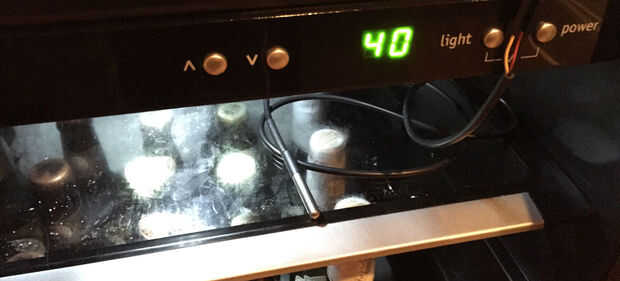 NCE haya terminado de jugar, matar el script con CTRL + C. Coloque el extremo de la sonda dentro del refrigerador. He utilizado cables de puente largo para que la puerta podría cerrar en los cables de puente más en lugar del cable más grueso del DS18B20. Ahora estamos listos para ponerlo todo juntos.