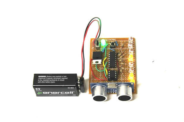 El "binario" es básicamente como suena. El valor de este dispositivo de medición se visualizará en binario. Si usted siente que esto es un problema, podría reemplazar el display binario con un display de 7 segmentos o un lcd. Sin embargo, personalmente me gusta el estilo de la pantalla binario y me ayuda a ser más fluido en la lectura binaria que es por eso que elegí. (Este límite de la distancia a 255 aunque)
