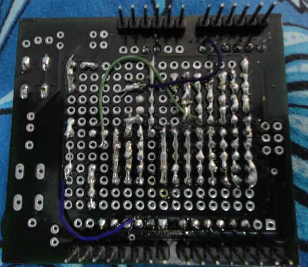 El DAC se suelda en el arduino protoshield junto con el circuito del sensor de temperatura, en esquema se muestran las conexiones de las dos CAD con pines de arduino
