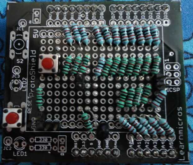 En nuestro proyecto digitales pins D2-D9 se utilizan en DAC1, pines digitales D11 D13 y clavijas analógicas A1-A5 se utilizan en DAC2.