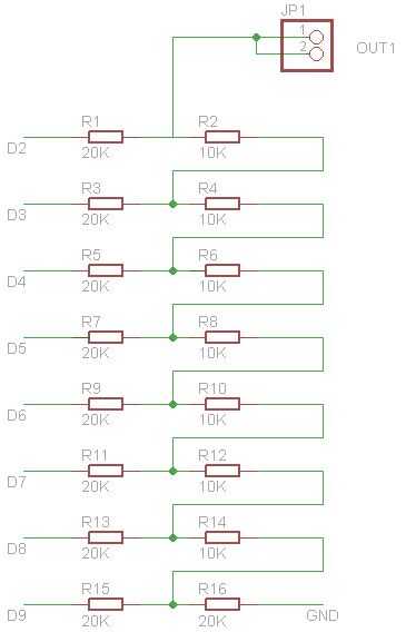 Aunque existen muchos tipos de configuración CAD, una escalera R-2R es la manera simple y barata de realizar conversión de Digital a analógico, utilizando arreglos repetitivos de redes del resistor de precisión en una escalera-como la configuración. En este proyecto hemos utilizado formaciones de escalera R-2R de 8 bits dos dos convierten la señal digital de arduino en forma analógica y estos se alimentan a los dos canales del osciloscopio.