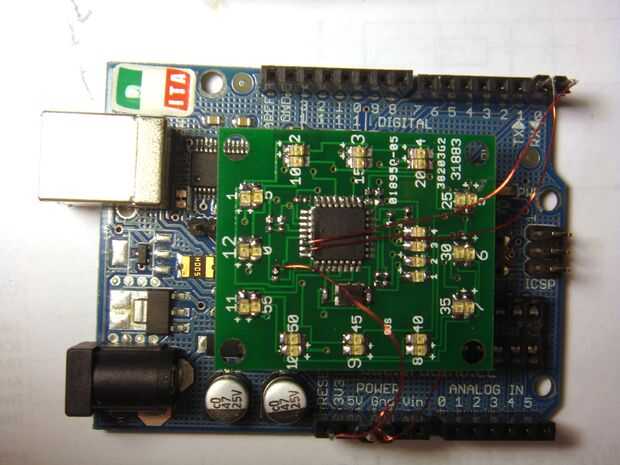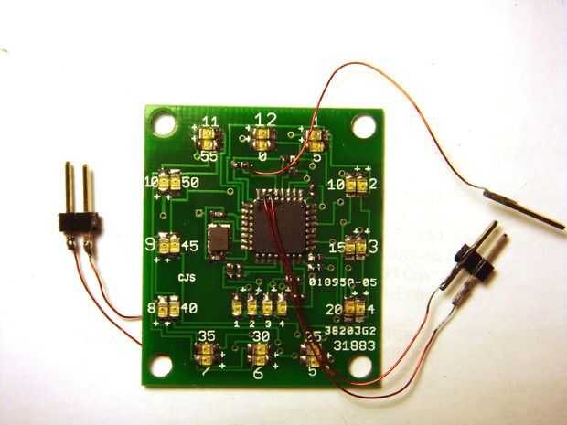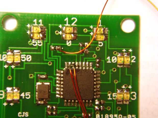 Descargar el sketch de arduino desde la parte inferior de esta página, abrir el IDE de arduino y subir al reloj. Una vez que termine cargando, el 2 LED a la 12:00 posición deberá encenderse. Si espera un minuto, uno de los LEDs amarillos se enciende. Por supuesto, no puede programar el tiempo ya que los botones no se han soldado todavía, pero que vendrá más adelante.
