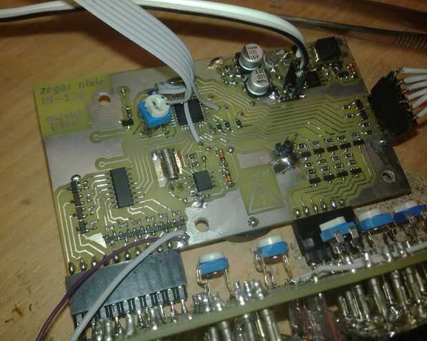 El reloj se controla con ATmega168P usando el oscilador interno RC. Se encuentra a 8MHz porque ánodos de nixies son multiplexados. Para esto, utilicé HV típica conmutación de circuitos (SMBTA42 y PMBTA92 en los esquemas). 4028 (BCD al decodificador binario) que conduce SMBTA42 transistores controla cátodos. Nixies en 12 requieren sobre 150V funcione correctamente - yo estoy usando la aplicación típica del MC34063 cambiando el regulador. Mientras que los interruptores IRFR220N, carga se suministra con alto voltaje que puede ser ajustado (150-170V) entradas HVC0 y HVC1. Cuando R41 y R42 son todavía unsoldered, el circuito de alimentación y utilice el potenciómetro R34 para calibrar el regulador (debe dar sobre 164V).