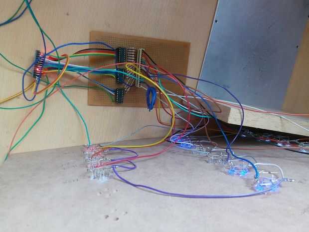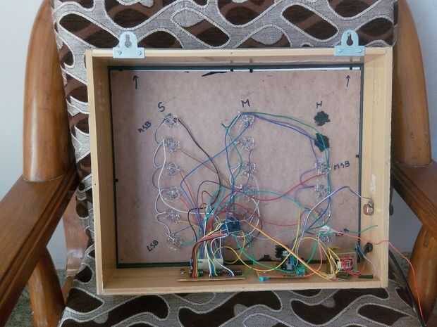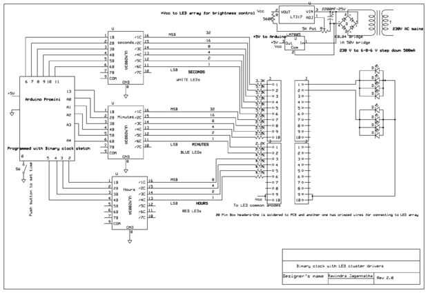 Ya que tenía planes más adelante a utilizar lámparas o carga más grande en vez del clúster LED 4, quería futuro prueba el circuito. Algunos restos NPN darlington ICs (ULN 2003A) estaban disponibles, hice uso de ellos con un chip para hora minuto y segundo pasadores. (cada ULN 2003A tiene 7 pares de darlington dentro, usé 6 en dos fichas para segundos y minutos y 4 horas). Ver esquema para más detalles.