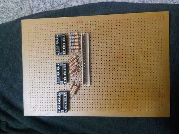 Soldar todos los componentes en una PCB de propósito general ya que es bastante simple circuito a montar. Comenzó con bases IC y resistencias (poco torpes ya que necesitaba alinear resistencias de 1/2 watt a los encabezados de 20 pines de soldadura. Más tarde completado todas las conexiones y cableado según el diagrama esquemático. Ver fotos de arriba. Separado el tablero de la fuente de alimentación con puente rectificador, condensador de filtro y 2 regulador de voltaje ICs para la flexibilidad en la fijación en un recinto y modularidad utilizado PCB encabezados con terminales de tornillo de utilidad más adelante.