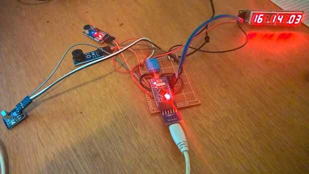 Nota: los pines digitales pueden ser quien quieras, pero el DHT11 tiene que ser un pin de entrada analógico. Puede cambiar los pins de adentro y el código. Sugerimos que pruebe su montaje en el protoboard primero antes de soldar. Por último sólo tienes que conectar la fuente de 5V en VCC y GND del arduino, y eso es todo.