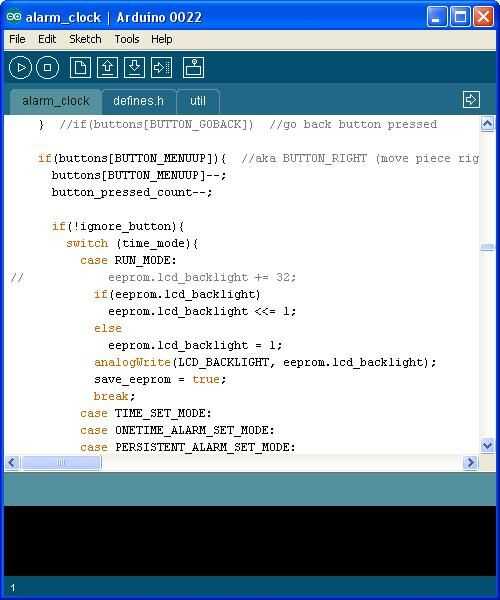 Presionando hacia arriba y hacia abajo (con la horizontal del reloj, lo normal) la luz de fondo aumenta y disminuye. Al principio la cantidad fue lineal pero quería más fina en el extremo inferior más grande ajuste y en el extremo más alto así que me cambié a un sistema más logarítmico. Qué es el doble del valor cuando pulse la tecla y reducir a la mitad el valor al pulsar abajo. Bastante simple. Yo nunca deja pasar por encima de 128 para evitar que el LED de tostado.