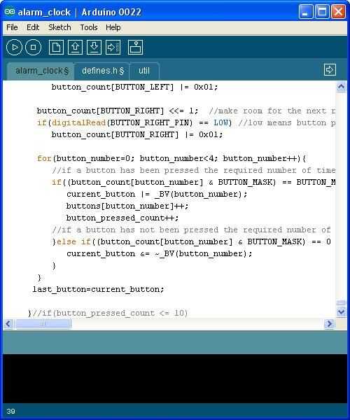 Yo también incrementa una variable para hacer un seguimiento de las prensas del botón total y el número de pulsar un botón determinado. Estas variables son disminuye cuando el botón está cuidado en la función loop() estándar. De este modo, pulsar un botón se registran inmediatamente pero el código que realmente hace algo útil no está en la rutina de interrupción bogging hacia abajo. Una rutina de interrupción debe ser lo más corta posible.