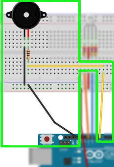 -Como se verá en la hoja de datos del altavoz piezoeléctrico, requiere 8mA, así que para este caso, utilizaremos una resistencia de 100Ohms (marrón-negro-marrón) con el fin de reducir la corriente que fluye a través de este componente.