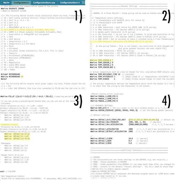 En el entorno de Arduino abrimos el firmware que ya descargamos File/Sketchbook/Marlin y veremos algunos parámetros de configuración antes de que cargue el firmware en nuestro controlador.