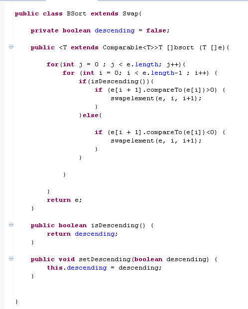 Ordena cualquier tipo de datos (cadenas, enteros, caracteres...), también conocido como genéricos, como se puede ver que el tipo de retorno es una plantilla que está parado para el tipo genérico. También es un algoritmo de clasificación basado en el ordenamiento de burbuja, con una pequeña modificación, puede ordenar también hacia atrás (decreciente). El si cláusula los controles en los que ordenar los elementos debe ordenarse.