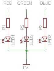 Se conectan a la placa a la Arduino como muestra entre + 5V y GND. Asegúrese que los pernos que conectado el ánodo led a son pines PWM (tienen un ~ sobre ellos). Una vez que está todo hecho, es la programación. Salidas de Arduino 5v para conseguir un cambio en los niveles de luz, que utiliza un sistema llamado modulación de anchura de pulso. El Arduino genera una onda cuadrada a una frecuencia determinada. Si tienes el ciclo de trabajo de la salida a 100% (255 en nuestro caso, 8bits), el led estará en todo momento. Si el ciclo de trabajo se establece en 50% (127) el led estará en la mitad del ciclo. Si se establece en 0% (0) será totalmente apagado. No vemos este efecto porque la frecuencia es demasiado elevada para poder observar la luz de encendido y apagado.