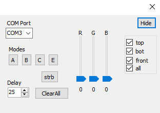 clear_all botón apaga todos los leds, el mismo efecto ocurre cuando usted cierra el software.