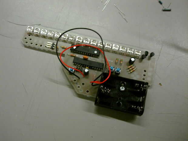 En esta versión es una pequeña sección del circuito de control de retroalimentación, para sincronizar la imagen a la velocidad de la rueda.