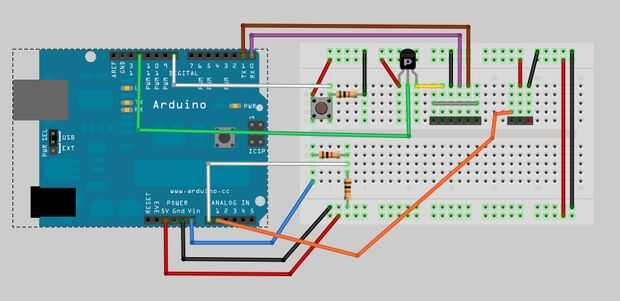 Por último quería el robot tener el potencial para tener diferentes modalidades, para cambiar entre los modos necesitaba un botón que al oprimirlos voluntad ciclo a través de las opciones. El Romeo tiene 7 botones conectados a los pines analógicos, sin embargo he utilizado todos los pines analógicos para otras cosas, por lo que necesitaba para añadir otro botón para pin digital 8.