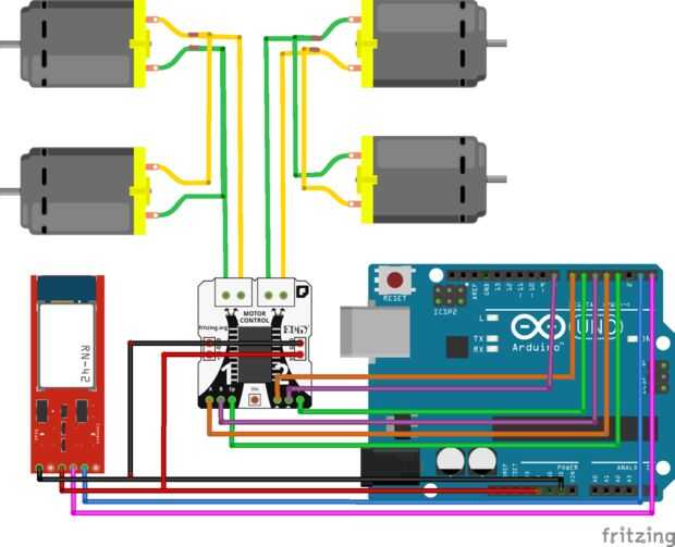 En esta parte conectaremos los pines del puente h y el modulo bluetooth al arduino