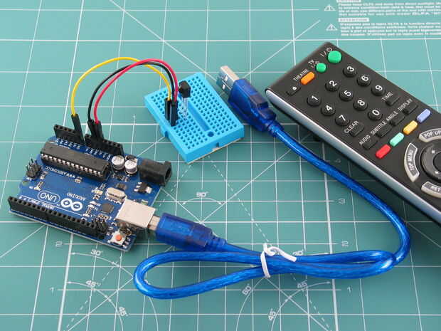Vamos a aprender cómo podemos recibir comandos de control remoto IR. El objetivo es obtener y recordar códigos de señal de su control remoto. Utilizamos en bosquejo de Ringo de escarabajo.
