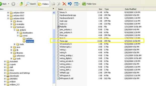 Si se obtienen errores de compilación, relacionadas con el archivo "tone.cpp", como el siguiente,