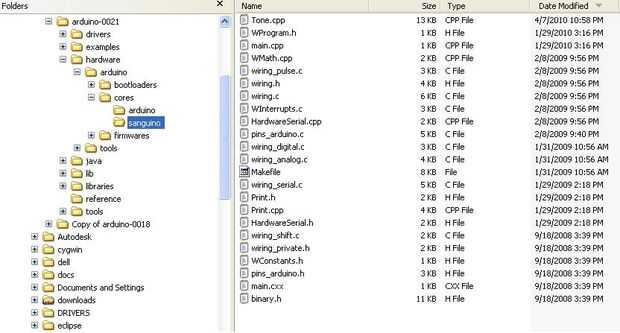 -crear la carpeta "sanguino" y copiar los archivos de Sanguino, como se muestra en la foto 1.