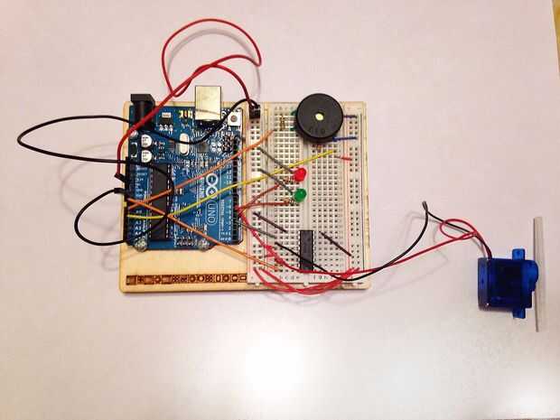Aquí está mi circuito para arduino. Lo único que hice fue quitar la fotorresistencia y animo fuertemente a que; todo lo que hizo fue darme problemas y no puede ser utilizado en esta situación de todas formas. También trató de tomar un mucho más claro, he foto por lo que es más fácil de ver. Ahora, el circuito sigue siendo la misma salvo el fotoresistor, así que todavía tiene que tener algo en A1 entrada analógica para leer, incluso si esa lectura sale a 0 (off). Edité mi código un poco diferente también, moverse por los golpes y los patrones. Usé un servo modificado como mi motor de la C.C., así que tuve que aumentar también los milisegundos para el motor funcionar. Iba a eliminar del código el fotoresistor y publicarlo aquí, pero está tan embebido (usted verá cuando usted lee a través del código) que es casi imposible deshacerse de sin completamente re-escribir el código. Una vez hecho esto, estás listo para pasar al siguiente paso. Para el código, visite este enlace