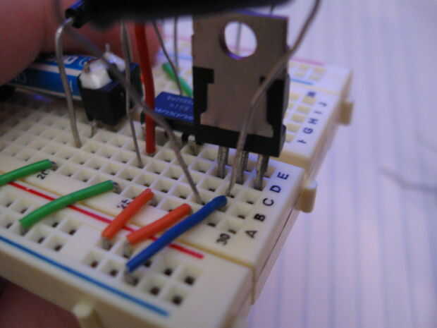 Paso 13. Conectar la tierra del regulador a tierra y el pin de salida a la energía en el tablero. (Su energía de la fuente de pared está conectado a la energía de entrada del regulador).