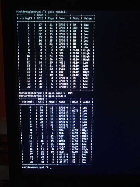 cheque # de GPIO readall del nuevo estado del modo de contacto 1/gpio-18 wiringpi