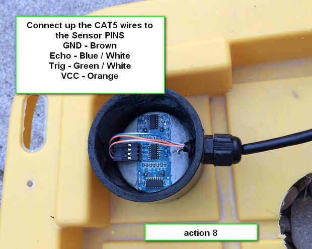 Este Sensor se encuentra en el montado en la tapa del attache de la pecera que está cubierto por el lecho crece el jardín de balcón. Está ubicado en un tubo ABS 2" negro colocado sobre el tanque de pescados. Ambos extremos de la carcasa se pueden quitar como esto da acceso fácil al sensor en caso de que el sensor falla en cualquier momento. Este fácil acceso permite el sensor cambiar si es necesario.
