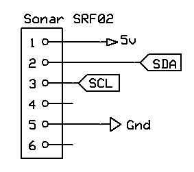 Los sonares se conectan a la hélice mediante un bus i2c. I2C es sólo otra forma elegante de hablar con un montón de dispositivos conectados a los mismos dos cables, pero cada dispositivo tiene es propia dirección así que usted puede hablar con ellos individualmente.