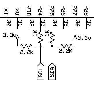 Construir circuito i2c con las resistencias de la serie de 1K y resistencias de pull-up de 2,2 k en el tablero de Proto (ver imagen).