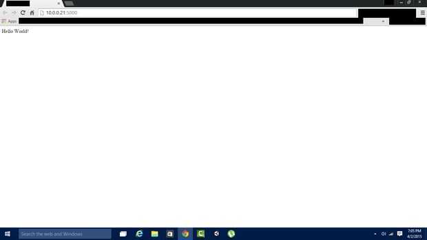 Este es el pan y la mantequilla de su servidor de web de Python. define que es una página. Con sólo un "/" como el camino, "¡ Hola mundo!" se devolverá a la Página principal cada vez que alguien intenta acceder a él. def Hola(): describe lo que se llama una función. Cualquier cosa que se aplica sangría debajo de esa función será parte de lo que sucede cuando alguien accede a la Página principal. No puede iniciar su nombre de la función con un número.