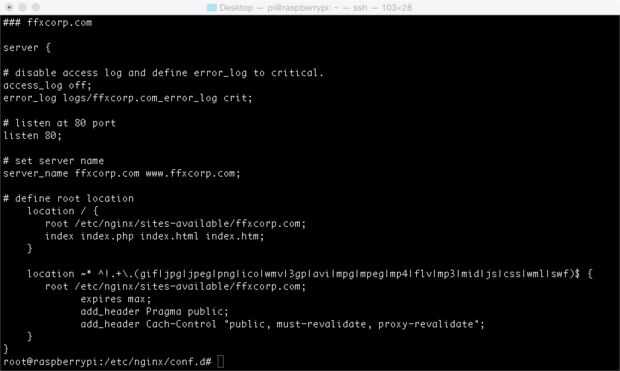 "mv mysite /etc/nginx/sites-available/mysite.com". Usted puede poner varios sitios aquí, este es el truco que utilizo para alojar varios sitios de una sola Pi.