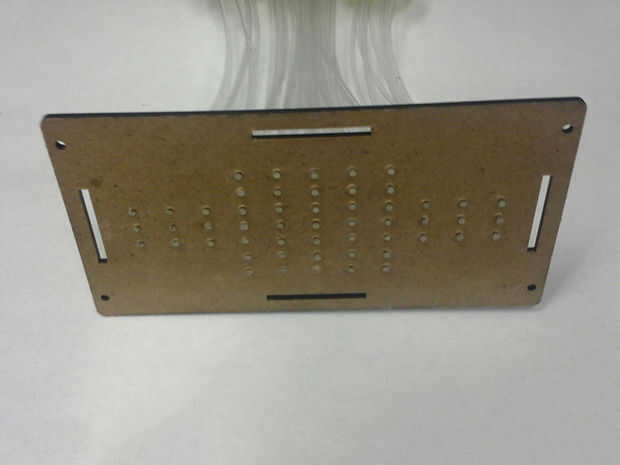 Puede ser un poco tedioso de colocar cada fibra en el orificio del lado derecho, y a la longitud que desee. Asi que tengan paciencia, no forzar las cosas y tirando de las fibras una por una hasta que estés contento con el resultado. Por último, utilizar la Dremel para cortar el sobrante en la parte interior de la panel de la caja.