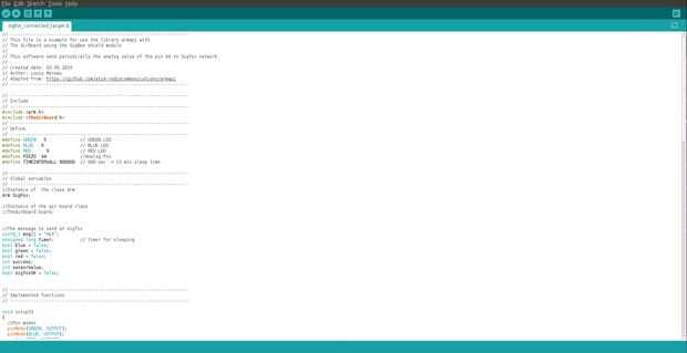 Fijamos el led verde y la variable sigfoxOK a true cuando el escudo está presente y el led si no rojo.