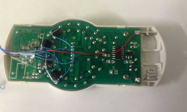 A continuación se que debe identificar el mecanismo del gatillo. Tenía la esperanza de que el rastro de cada botón corresponde a un pin GPIO en el microcontrolador remoto a bordo. Si es el caso, mi vida sería muy fácil, simplemente puedo aprovechar los rastros directamente a arduino y tire el voltaje hacia arriba o hacia abajo.