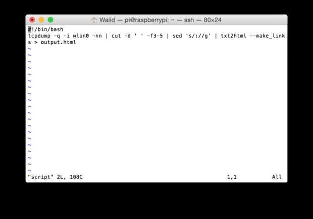 tcpdump - qnni wlan0 | Cut -d ' '-f3-5 | sed /: / / g' > salida