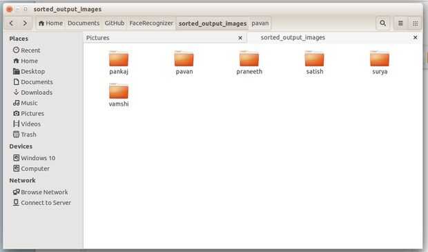 3. sorted_images - ahora, tenemos que escoger manualmente fotos de tus amigos y guardar en carpetas distintas con mismo nombres como tus amigos. Usted puede ver, he recogido fotografías de 6 de mis amigos y almacenados en carpetas distintas.