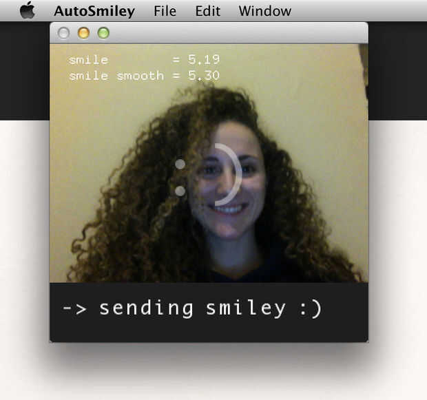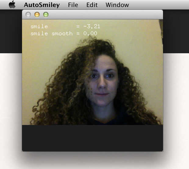 - Una vez que han descargado e instalado la aplicación AutoSmiley, abrirlo y asegúrese de que se conecta a la webcam del ordenador y reconoce tu sonrisa. Debería verse como las dos fotos arriba.
