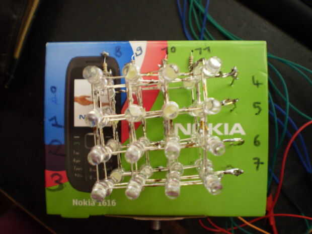 Primero probaremos las diferentes capas de les iluminación uno por uno, a continuación, varios de ellos la iluminación a la vez y finalmente encender todos los LEDs a la vez. Luego haremos algunos patrones por lo que fácilmente puede confirmar todos lo seperatly de trabajo LED. Si todo va según lo planeado, debería ver el mismo que en mi video. Asegúrese de que cada LED solo se ilumina!