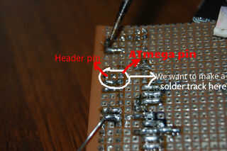 Cómo hacer soldar pistas??? En los cuadros siguientes he mostrado cómo hacer una soldadura conexión de pines del ATmega al respectivo encabezado de pista...