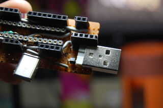 - Usted ahora ha completado el circuito de "Arduino" en la PCB. También es útil agregar más encabezados de 5v y tierra. También he añadido un conector USB macho para alimentar convenientemente la Junta...