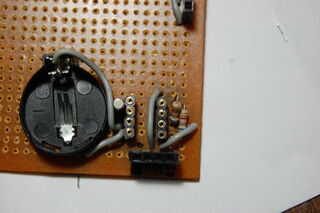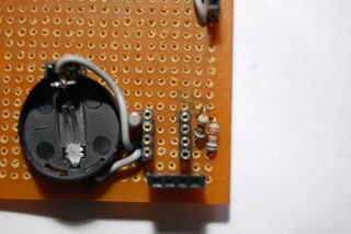 Sí es es un poco desordenado, pero las conexiones son seguras. Prueba con un probador de continuidad. - Pop en el chip DS1307 y la célula de la moneda.