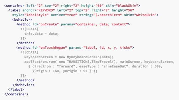 Esta etiqueta que se muestra en la parte superior de la pantalla es para escribir la palabra clave. Una vez que se toca la etiqueta, un teclado saltará. Transición se utiliza para cambiar entre la pantalla principal y el keyboardScreen.
