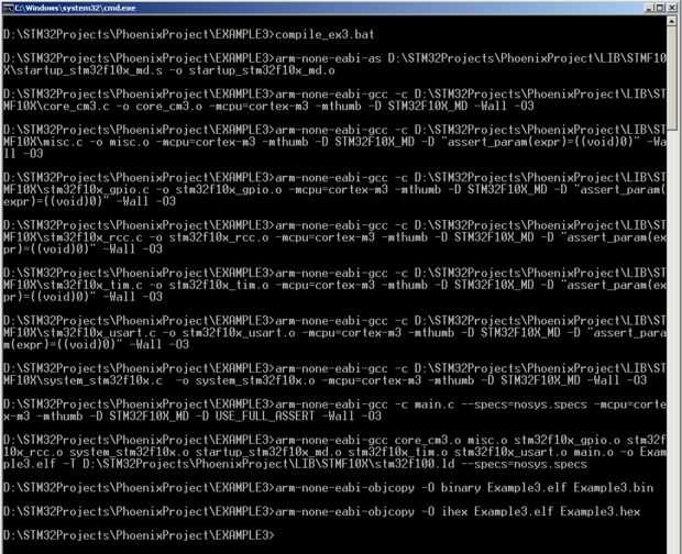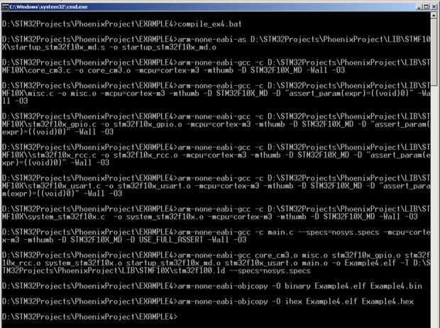 Después de la compilación se encuentra en el directorio actual muchos ficheros *.o; también los archivos *.bin y *.hex y *.elf .