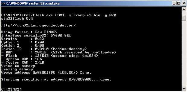 stm32flash COM3 -w Example1.bin -g 0x0 stm32flash COM3 -w Example2.bin -g 0x0 stm32flash COM3 -w Example3.bin -g 0x0