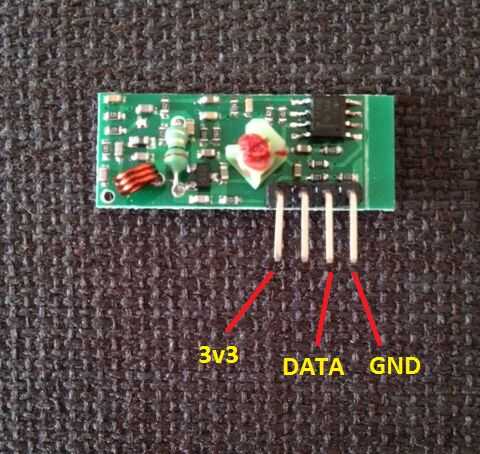Una vez que han averiguado cómo interactúan sus zócalos con el auricular, usted necesitará utilizar su unidad de receptor de 433MHz (foto arriba) a 'oler' los códigos ser enviados hacia fuera por el auricular. Una vez que hayas grabado las formas de onda de estos códigos, se les pueden replicar usando Python y enviarlos usando el transmisor.