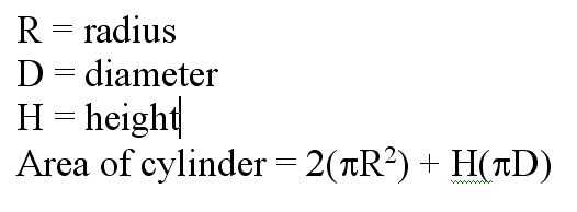 2 (area de círculo) + ((altura del cilindro) veces (circunferencia del círculo))