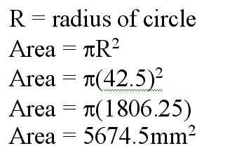 En primer lugar, permite encontrar el área de los círculos. La ecuación se muestra a continuación. Así que al final, obtenemos 5674.5 como la zona de Squardo milímetros para un círculo. Multiplíquelo por dos y obtenemos el área de ambos círculos (11349 milímetros cuadrados).
