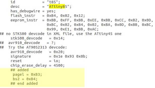 "avrdude: por favor definir señales de PAGEL y BS2 en el archivo de configuración por parte ATtiny85".