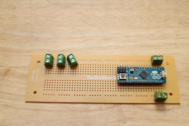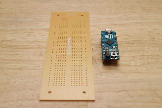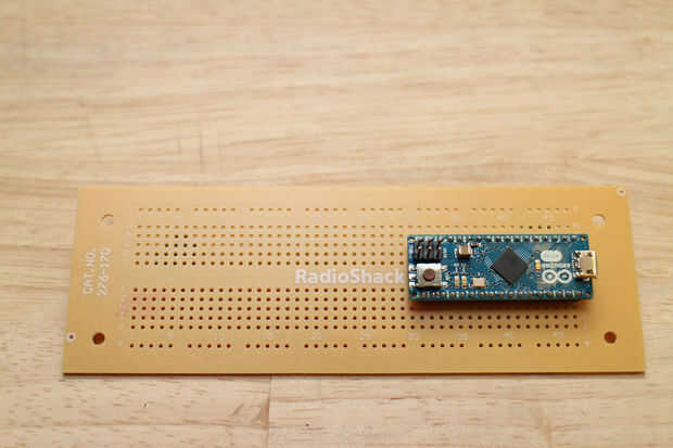 Coloque el Arduino Micro en el proto-board con el conector USB micro hacia fuera.